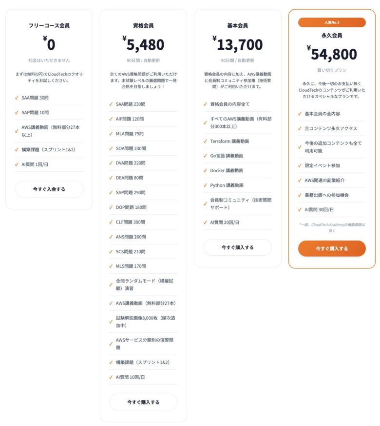 - AWS資格取得に特化したい!(資格会員)